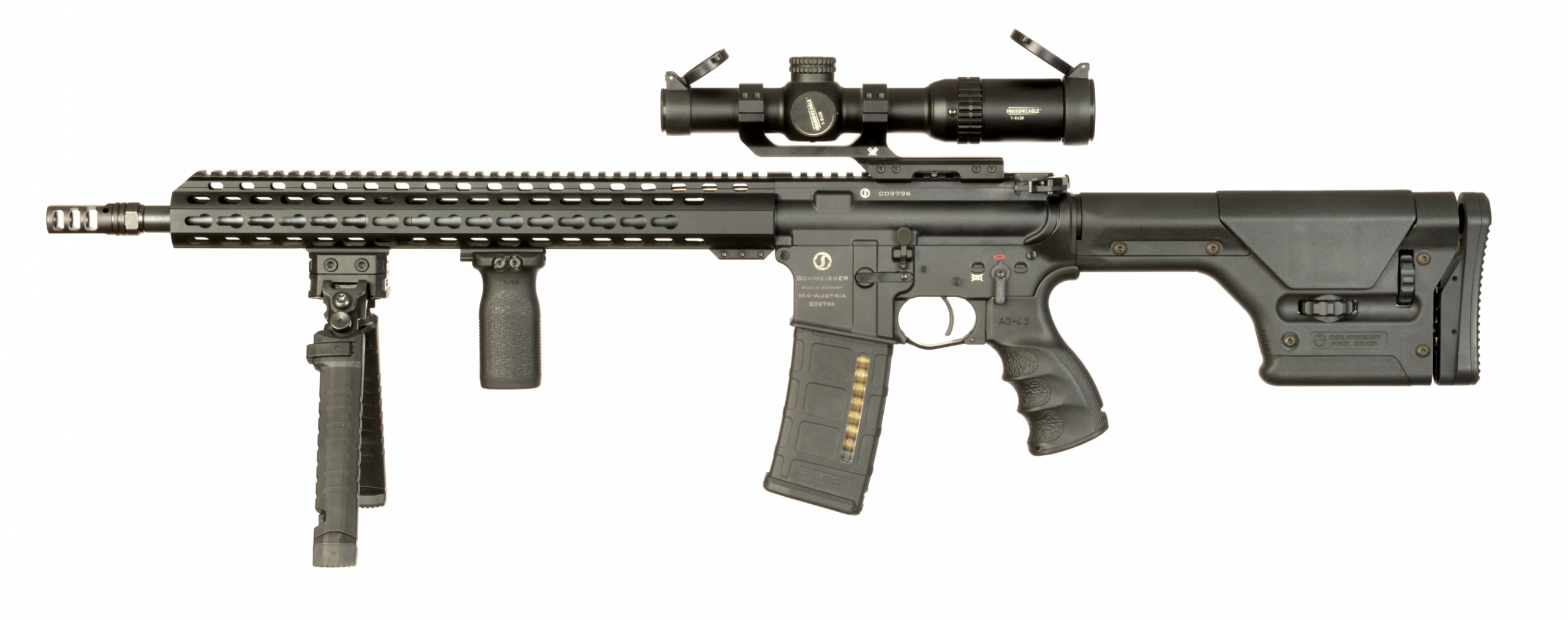 Die Schmeisser AR15 M5FL ist ein in Deutschland produziertes Selbstladegewehr welches auf der weltweit berühmten AR15-Plattform basiert. Die hochwertige Fertigung zeichnet sich besonders durch das breite Spektrum an Anwendungsmöglichkeiten aus. Unser Modell sticht durch verschiedenste, verbaute Zubehörteile hervor. Der Kompensator, das Zweibein, die variable Visierung sowie der Präzisions Schaft ermöglichen nicht nur präzise Treffer sondern auch eine bequeme Bedienung.